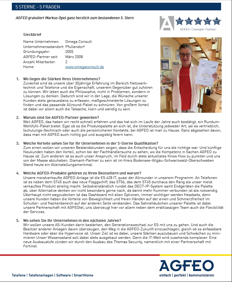 Rund 30 Jahre Erfahrung machen die Omega Consult zu einem modernen Systemhaus, das für zukunftsorientierte Lösungen im IT- und TK-Bereich steht. In der heutigen Bürowelt erringen die Vernetzung und das Zusammenwachsen der IT- und TK-Welten immer größere Bedeutung, hier bieten wir kompetente Lösungen aus einer Hand. Unsere Kunden im Raum Bodenseekreis, Sigmaringen, Oberschwaben und auch im Allgäu finden nicht nur eine individuelle, auf den jeweiligen Bedarf zugeschnittene Beratung, Planung und Realisierung ihrer Vorhaben, sondern erfahren auch eine zuverlässige Betreuung und eine langjährige vertrauensvolle Partnerschaft. Unsere Motivation und Kraft ist dabei in der Tat eine besondere. To Be Powered By Jesus Christ.
